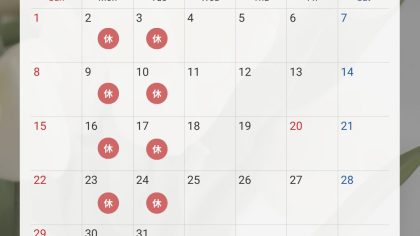 【10月休業日お知らせ】6日(月)、7日(火)14日(火)、15日(水)20日(月)、21日(火)27日(月)、28日(火)休業日となります。*10月13日(月)祝日は営業のため、15日(水)が休業となります。どうぞよろしくお願いいたします。